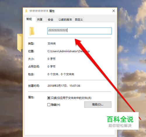 在文件夹的属性界面,将文件夹的名字进行修改。