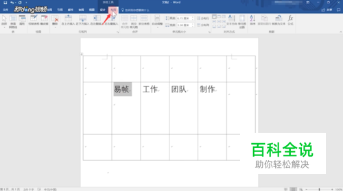 方法一:直接选中表格内的文字,点击菜单栏中出现“布局”选项卡。