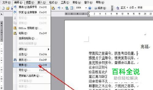 鼠标左键单击菜单栏中“编辑”——“替换”命令。