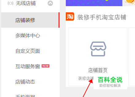 4、我们首先进入管理后台,点击手机淘宝店铺,点击装修进入