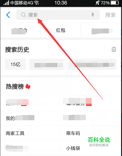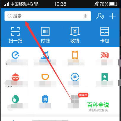 首先大家打开手机支付宝,点击页面上端的搜索框