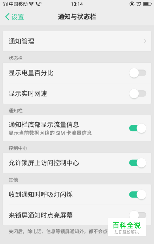 在允许通知那里选择绿色为通知,可以根据自己想要的选择在“在锁屏上显示,在屏幕顶部显示等”选项,现在就看你自己的需要了,要就把后面的选项点为绿色即可;
