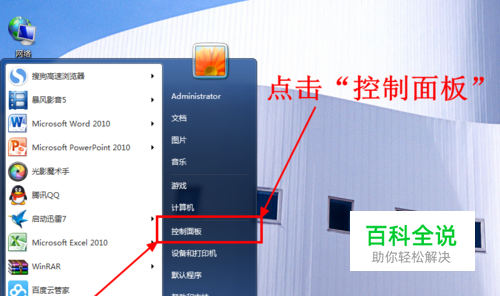 点击桌面左下角的 开始(Win图标),然后点击“ 控制面板”。