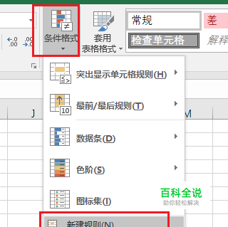 点击“开始”菜单--》“条件格式”--》“新建规则”。