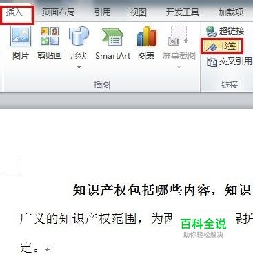 书签是指一本书的标签,利用书签,可以更快的找到我们阅读或者修改的位置,特别是一本比较长的文章。所以在WORD中来说,表示的也是这样的意思,它是用于定位的,比如说,在编辑或阅读一篇较长的WORD文档时,想在某一处或几处留下标记,以便以后查找、修改,便可以该处插入一书签(书签仅会显示在屏幕上,但不会打印出来,像word的水印背景一样)。下面,以《知识产权包括哪些内容,知识产权包括什么?》为例进行书签操作。
