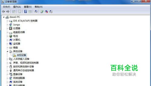 这时电脑会发现新硬件,在设备管理器里可以看到未知设备