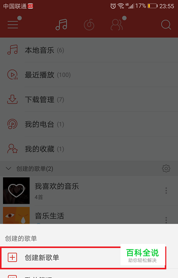 第二步点击之后看到可以进行创建新歌单和歌单管理,我们先点击创建新歌单,如下图所示: