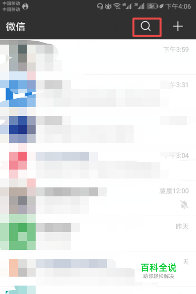 首先,我们打开我们手机上的微信,进入微信后,我们点击搜索按钮;