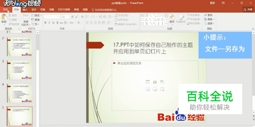 PPT中如何保存制作的主题并应用到单页幻灯片上