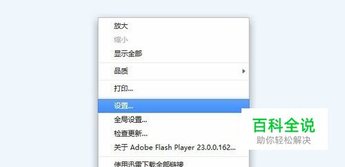Flash 播放区域(或视频播放区域),选择设置