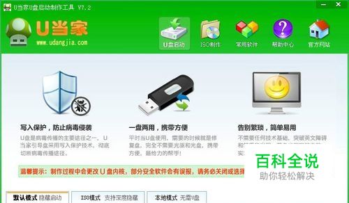 第二步:用“U当家U盘启动盘制作工具”制作成U盘启动盘