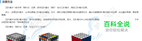 五阶魔方一般采用“降阶法”还原,即将五阶魔方“降阶”成为三阶魔方,再按三阶魔方还原。 所以,还原五阶魔方,必须先具备三阶魔方的基础。此外,降阶法是还原高阶魔方的通用方法,建议先掌握四阶魔方降阶法还原,如此融会 贯通,更容易掌握。 五阶魔方与四阶魔方相比,虽然阶数增加,但难度相对而言反而较易。因为,五阶魔方中心块的相对位置是固定的,所以“复原中心块”较 简单,且不会出现四阶魔方的“特殊情况校正”。 五阶魔方“降阶法”还原,分为以下三个阶段: 第一阶段:还原中心块。 第二阶段:合并棱边。 第三阶段:按三阶魔方还原。