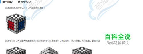 2.2 还原最后两个侧面中心块 通过“去、让、回”原理的简单应用,就可以很轻松地对完顶面以及两个侧面中心块。 以下介绍在对最后两个侧面中心块时,会遇到的两种稍复杂的情况。当然,同样需要运用“去、让、回”原理。