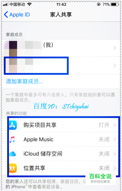返回Apple ID界面,可以看到有一个邀请,如果对方同意后就会加入家庭共享界面,在里面可以进行管理,可以增加一些共享选项,也可以关闭,还可以调整家庭成员,挺不错的,有需要的可以试试。