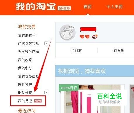 切换到新版后,就只有在左侧那些导航栏目里才可以看到“我的足迹”选项了,其他位置都没找到了: