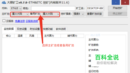 通过下拉选择一个主矿池和备用矿池