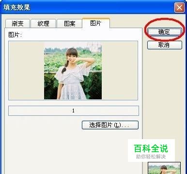这样就打开了“填充效果”对话框,选择上面的“图片”选项,单击下面的“选择图片”按钮,如下图。