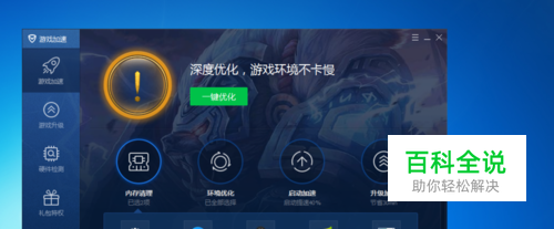 首先在安全管家里打开游戏加速器会来到一键优化的界面,如图所示