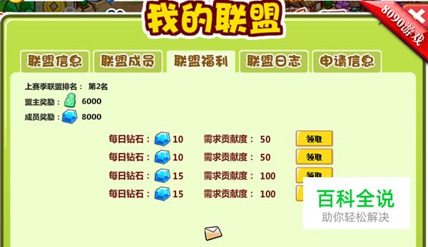 在8090村长征战团中联盟是大家共同组建起来的一个家园,大家加入联盟只会有好处,而不会有坏处的。联盟的发展都需要各位共同努力,大家在为联盟付出的时候,不知不觉中会获得一些联盟贡献度哦。 联盟贡献是一种重要的资源,玩家只要加入了联盟,才能拿获得一些联盟贡献值。当玩家等级达到10级,加入到自己喜欢的联盟,然后进入联盟的“联盟福利”栏,在联盟福利界面下方,就会展示角色当前持有的联盟贡献值。联盟贡献是有使用的时效限制,如果超出时间未使用将会清零。村长征战团联盟贡献的时效按季度计算,每个季度为7天,每逢周三都会清零一次,这与联盟活跃度排行统计时间是相对应的。 大家拥有联盟贡献值后,就可以进入到联盟福利界面,领取每天的钻石奖励,每天有50钻石,每次领取共要花费300联盟贡献值。另外,玩家还可以进入村长征战团幸运抽奖界面,花费2000点联盟贡献值进行抽奖,会随机抽中金币、宝石箱、圣诞树、免战牌、强攻牌、钻石、副本重置符、花坛、篝火等奖励。
