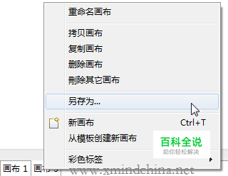 3)单击“另存为”,即可保存该画布为一个新的工作簿。