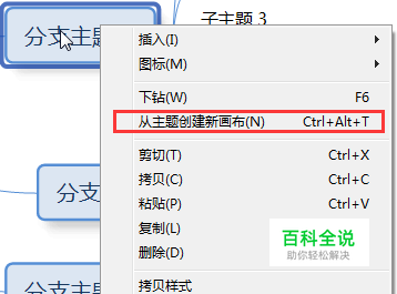 2)右击“从主题创建新画布”(快捷键Ctrl+Alt+T),即可创建以该目标主题为中心主题的新画布。