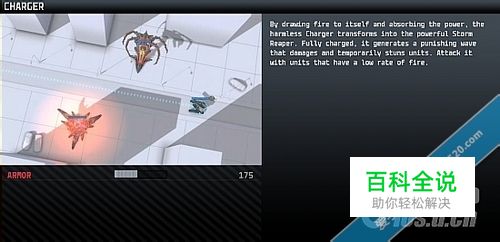 Blaster冲击波:基础异形防御单位 护甲:100 伤害:73 射程:50 Scorcher大热天:经典的防御塔 护甲:100 伤害:224 射程:正三角 Charger充能器:无攻击 但是被伤害会充能升级成为风暴收割者 护甲:175