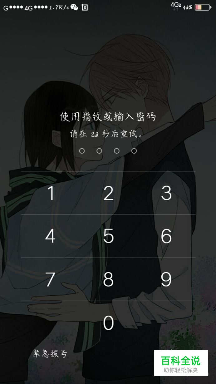 首先,我们在4个数字密码试过五次之后,就会出现锁屏三十秒的字样,但是它会跳出一个忘记密码。