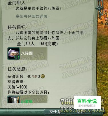 在天策地图八阵图里的NPC高御书处接到任务《金门甲人》