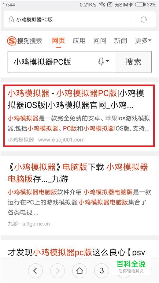 先搜狗搜索“小鸡模拟器”,然后进入官网下载小鸡模拟器APP并安装。