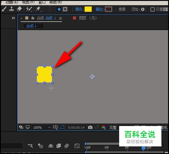 启动软件,CTRL+N,新建合成;然后,我们选择矩形工具,在合成窗口这里绘制一个黄色填充,无描边的矩形。