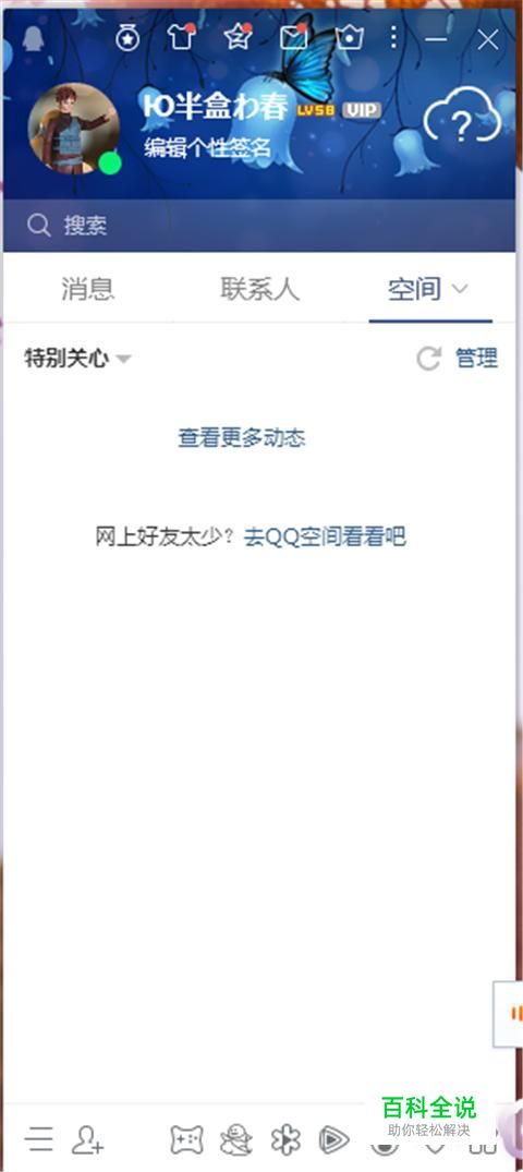 首先在我们的电脑桌面上登录QQ并点击屏幕上方的空间图标,如下图所示。
