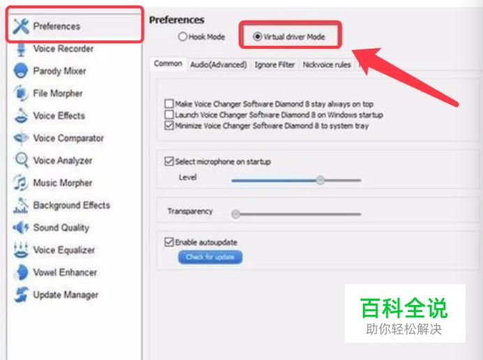 我们先要下载一个变声器,然后打开,把设置里边的驱动模式设为虚拟声卡的模式.