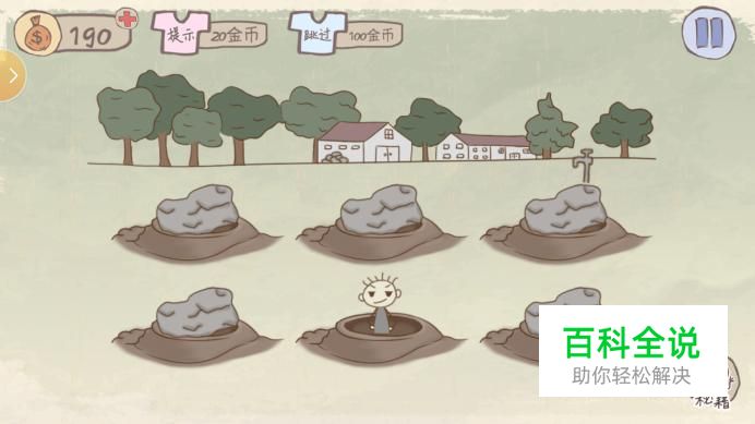 第九关,像打地鼠一样的,我们要在六个坑里抓住史小坑,但是,不论怎样你都是抓不住的╮(╯_╰)╭,这时候我们就要借助道具了——远方房屋旁的石堆,点一下石堆,点一个近处的坑,就会有一个石头堵住这个坑,我们要堵住五个坑,然后史小坑就无处可逃了๑乛v乛๑嘿嘿