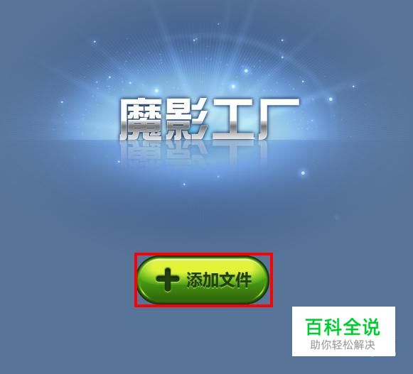 在魔影工厂的界面内点击【添加文件】按钮,并载入从百度网盘上下载的视频。