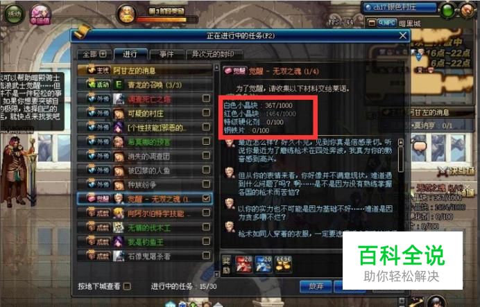 觉醒任务分为多个步骤,首先我们需要收集一些材料,这些材料中晶块可以在拍卖行获得,钢铁片和特级硬化剂可以在制作商罗杰处制作。