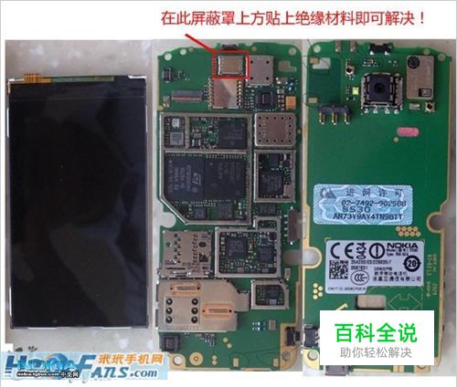 建议仍然受此问题的用户,去一般修手机的小店找师傅拆开手机,在下图所示的屏蔽罩上贴上透明胶就能解决了!
