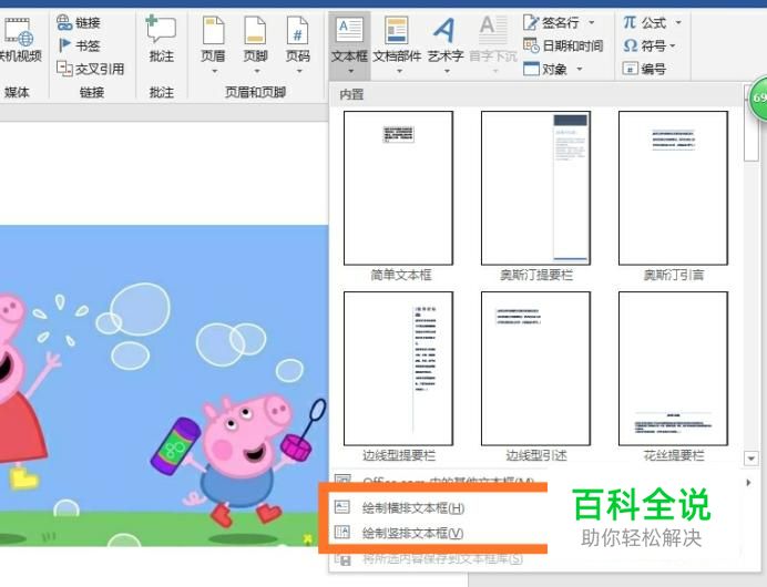 在插入选项栏中找到文本框,点击后找到绘制横版(竖版)文本框,点击后在图片上绘制出需要大小的文本框