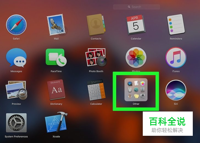 打开“Launchpad”。它的图标是银色的,看上去像是一个火箭,一般位于电脑的Dock栏中。Dock栏位于屏幕的底部,是一个包含多个应用程序图标的面板。你也可以根据自己的喜好把Dock栏移动到屏幕的左侧或右侧。 如果你使用的是苹果笔记本,也可以在触摸板上用捏合四指的手势来打开Launchpad。 你也可以按下键盘上的键来打开它。