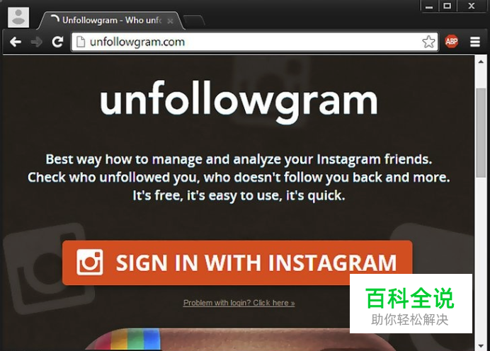 选择并使用一个Instagram监控网站。不管你是否相信,网络上确实存在许多这样的监控网站,可以允许你轻易地查到是谁取消了对你的关注。它们使用相同的工作原理:将关注你的用户列表存入数据库,然后当你进行更新时,它们会将当前关注用户列表与保存在数据库中的列表进行比较。那些在旧列表中且不在新列表中的就是那些取消关注你的用户。下面会列出几个不错的监控跟踪网站: Unfollowers.com:这款简易好用的网站有着清晰明了的操作界面,也可以用于监控你的Twitter账户。 Justunfollow.com:这个网站提供许多额外功能的工具,能够处理大量的粉丝信息,包括将粉丝移动至“白名单”或“黑名单”。 Insta.friendorfollow.com:这个简洁、易上手的网站允许你查看你关注的用户是否也关注了你。 以上各网站都非常不错,但基于本文的目的,我们使用Unfollowgram来追踪找出取消关注你的粉丝(地址:unfollowgram.com)。注意,所有的监控网站大致相同,所以就算使用其它网站,你也可以参考本文的步骤进行操作。
