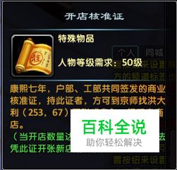 玩家商店正式开张,需要持有开店核准证的50级以上玩家,到京师(253,67)处找洪大利,缴纳一定开店费用,就可以开一间自己的商店。