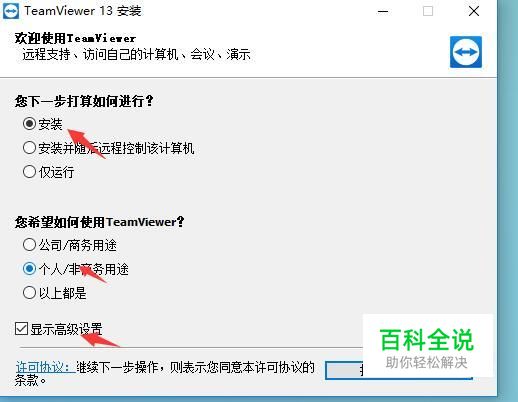 接着点击安装,点击个人非商务类型,在将高级配置选中,这样才能进行匹配,如图所示。