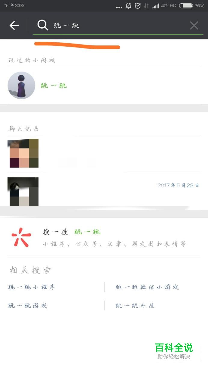在页面中输入“跳一跳”进行搜索,如下图所示