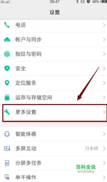 然后,我们滑动设置页面,在设置页面找到“更多设置”并点击。
