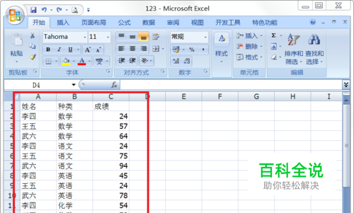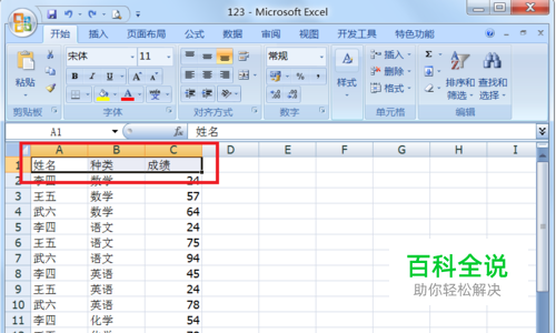 第五步:此时我们发现需要筛选的第一行有了下拉三角,单击下拉三角就可以筛选了。