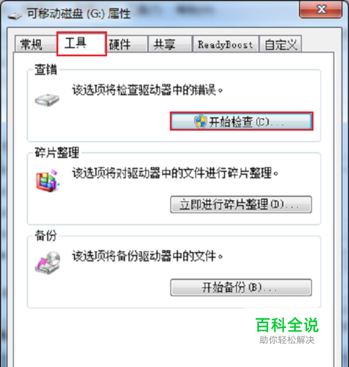 第三步弹出磁盘检查框之后,勾选自动修复文件系统错误和扫描并尝试恢复坏扇区,点击开始,进行u盘修复,如下图所示: