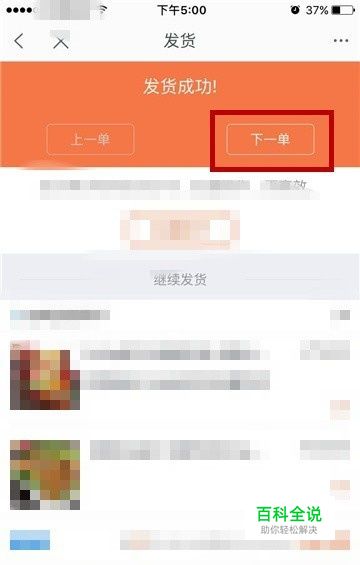 系统在确认后,便会提示发货成功。 我们可以点击“上一单”或者“下一单”来继续发货。