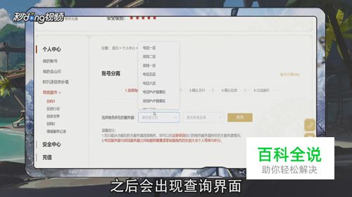 然后你要选择你要分离的角色的区服,之后会出现查询界面,输入完后点击“查找”。