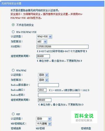 A路由器其他可以不做修改。如果要加密码,在下面界面中设置,选择加密类型。