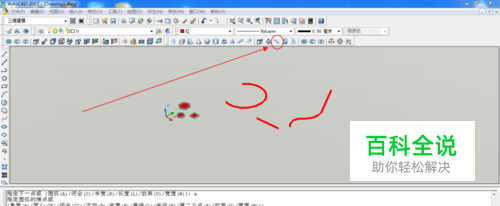 这是我们画三个线,我分别画了圆弧,直线和PL线。