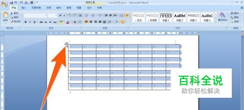 删除这个表格后,现在再用第二种方法删除这个word示范文件中的另一个表格,先将鼠标移动表格的左上角,点击那个选取标记,这样就把该表格选择上了,如下图所示。
